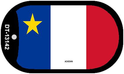 Acadian Canada Flag Novelty Metal Dog Tag Necklace. 1" x 2" dog tag kit including 15" silver chain and silencer. Made of the highest quality aluminum for a weather resistant finish. It is lightweight & durable. Proudly made in the USA.