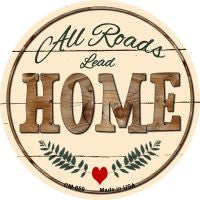 All Roads Lead Home Novelty Circle Coaster Set of 4. 3.5" Circle Coaster Set of 4. Each coaster has cork adhered to the back to provide surface protection for use on desks, tables, and shelves. Made of the highest quality aluminum with a weather resistant finish. Proudly made in the USA.