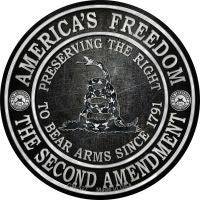 Americas Freedom Novelty Metal Mini Circle Magnet CM-527. 3.5" x 3.5" high gloss metal mini circle with magnet on the back. Made of the highest quality aluminum for a weather resistant finish. It is lightweight & durable. Proudly made in the USA.