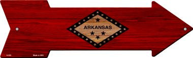 Arkansas State Flag Novelty Arrows. 5" X 17" Arrow Sign. Made of the highest quality aluminum for a weather resistant finish. It is lightweight and durable. Pre-drilled holes for quick and easy mounting. Each is proudly made in the USA.