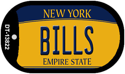 Bills New York Yellow Novelty Metal Dog Tag Necklace. 1" x 2" dog tag kit including 15" silver chain and silencer. Made of the highest quality aluminum for a weather resistant finish. It is lightweight and durable. Individually shrink-wrapped and proudly made in the USA.