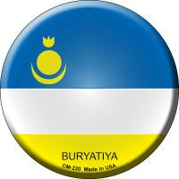 Buryatiya Country Novelty Circle Coaster Set of 4. 3.5" Circle Coaster Set of 4. Each coaster has cork adhered to the back to provide surface protection for use on desks, tables, and shelves. Made of the highest quality aluminum with a weather resistant finish. Proudly made in the USA.