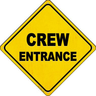 Crew Entrance Novelty Metal Crossing Sign. 16.5"X16.5" metal crossing sign, 12"x12" square size. Made of the highest quality aluminum for a weather resistant finish. It is lightweight and durable and has pre-drilled holes for quick and easy mounting. Personalize with ribbon, wire or string. Individually shrink-wrapped and proudly made in the USA.