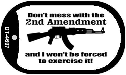Dont Mess With Novelty Metal Dog Tag Necklace DT-4697. 1.5" x 2" dog tag kit including 15" silver chain and silencer. Made of the highest quality aluminum for a weather resistant finish. It is lightweight & durable. Proudly made in the USA.