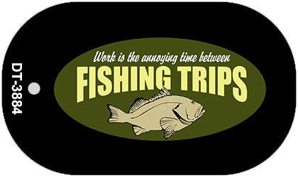 Fishing Trips Novelty Metal Dog Tag Necklace DT-3884. 1.5" x 2" dog tag kit including 15" silver chain and silencer. Made of the highest quality aluminum for a weather resistant finish. It is lightweight & durable. Proudly made in the USA.