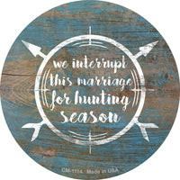 For Hunting Season Novelty Circle Coaster Set of 4. 3.5" Circle Coaster Set of 4. Each coaster has cork adhered to the back to provide surface protection for use on desks, tables, and shelves. Made of the highest quality aluminum with a weather resistant finish. Proudly made in the USA.