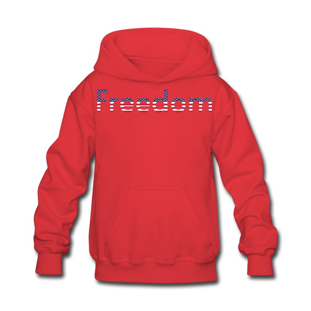 Freedom Patriotic Word Art Hoodie for Kids – USA Pride, Red White & Blue Design, Perfect Gift for Young Patriots