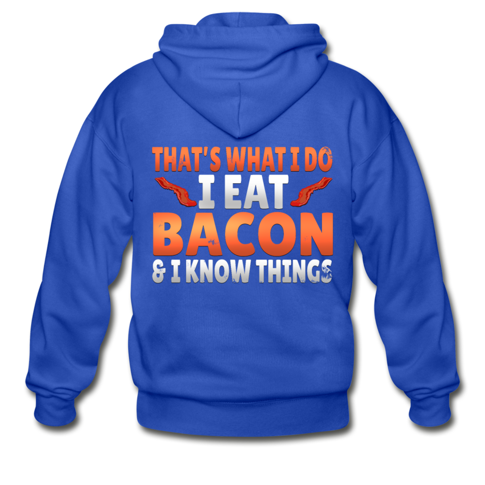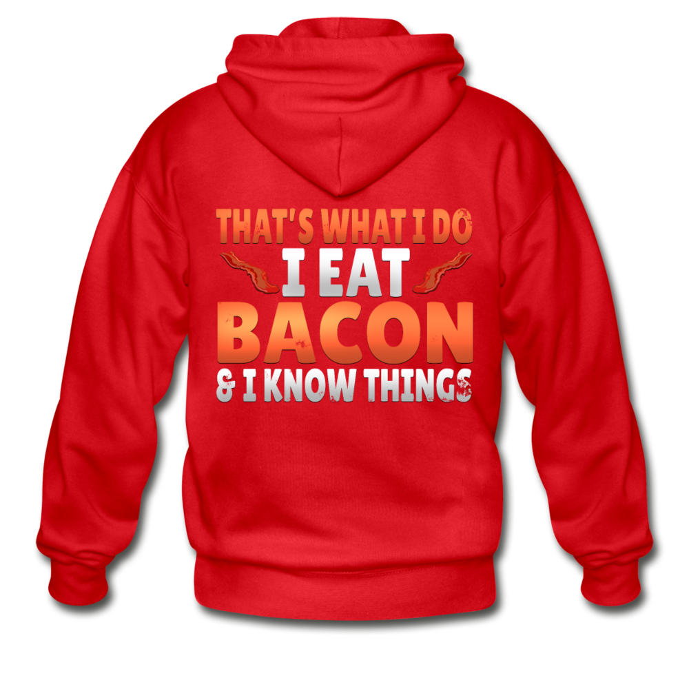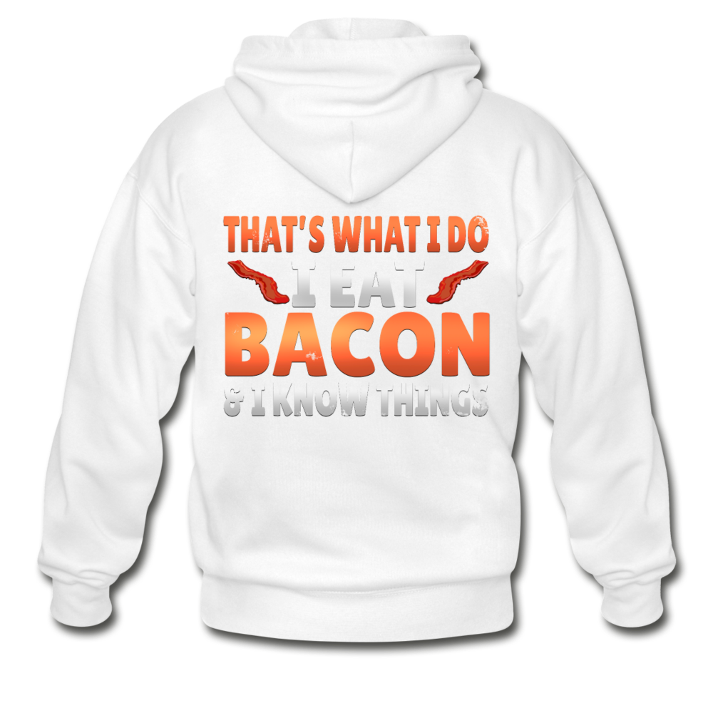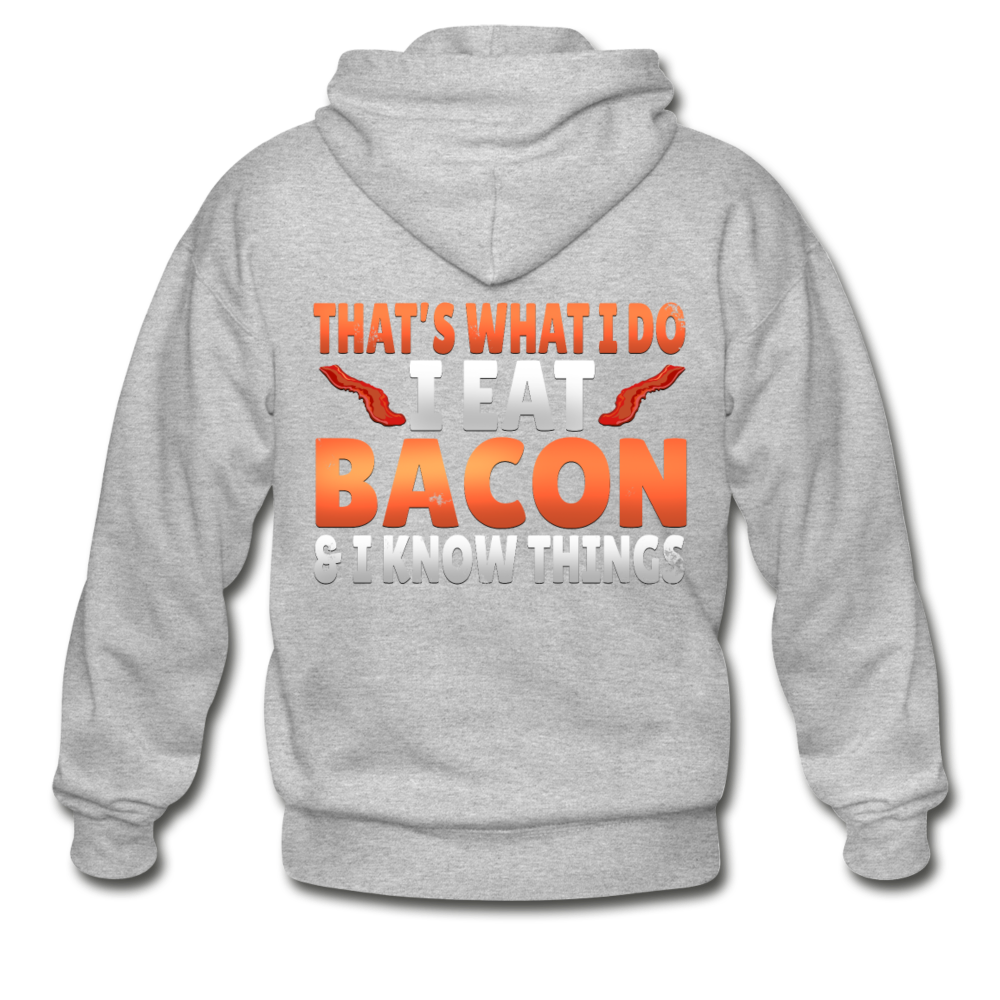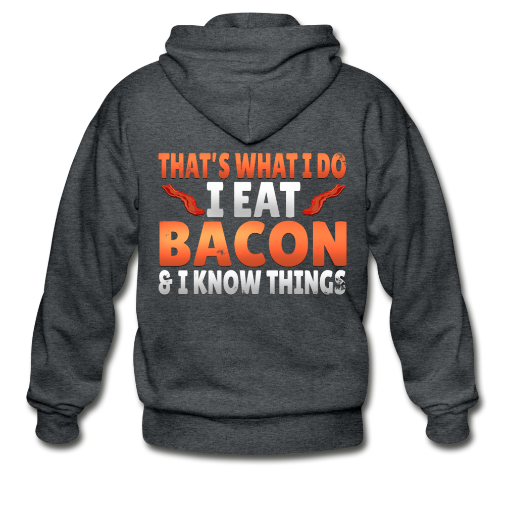 Funny I Eat Bacon And Know Things Bacon Lover Gildan Heavy Blend Adult Zip Hoodie
