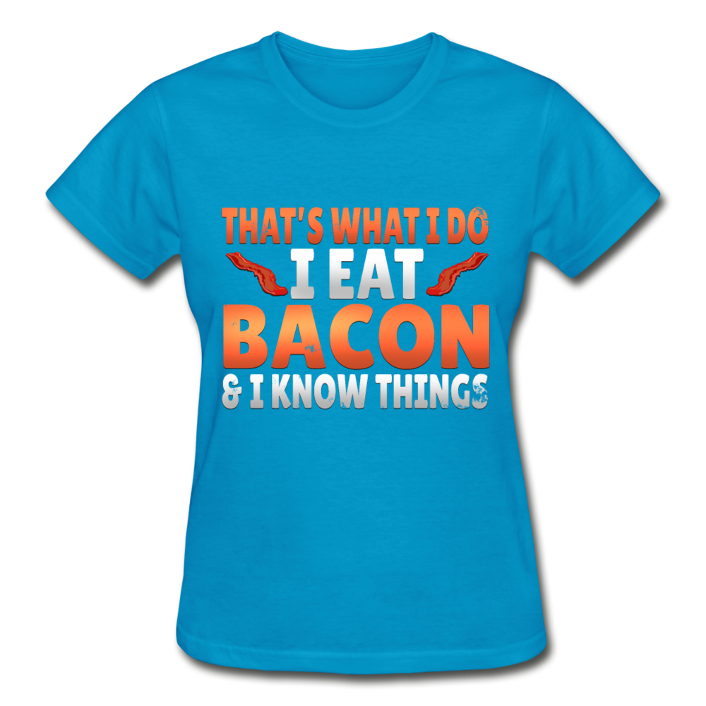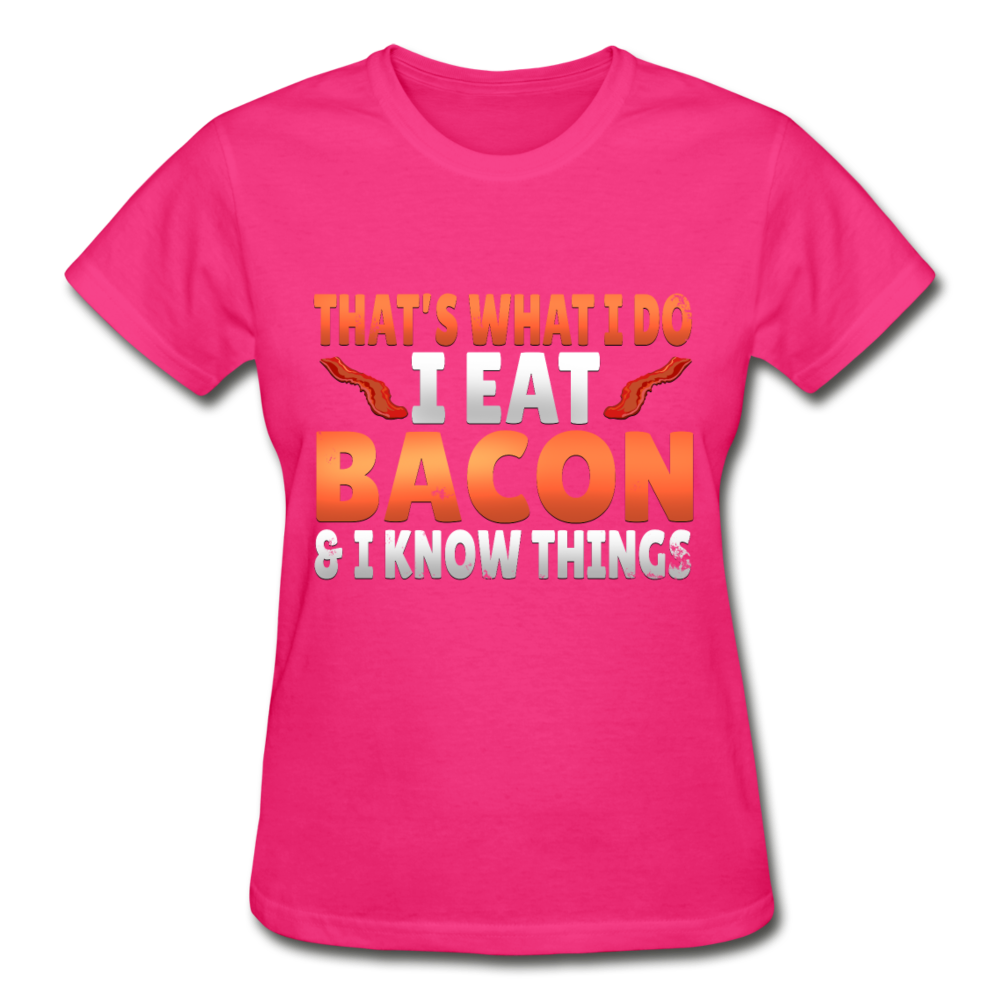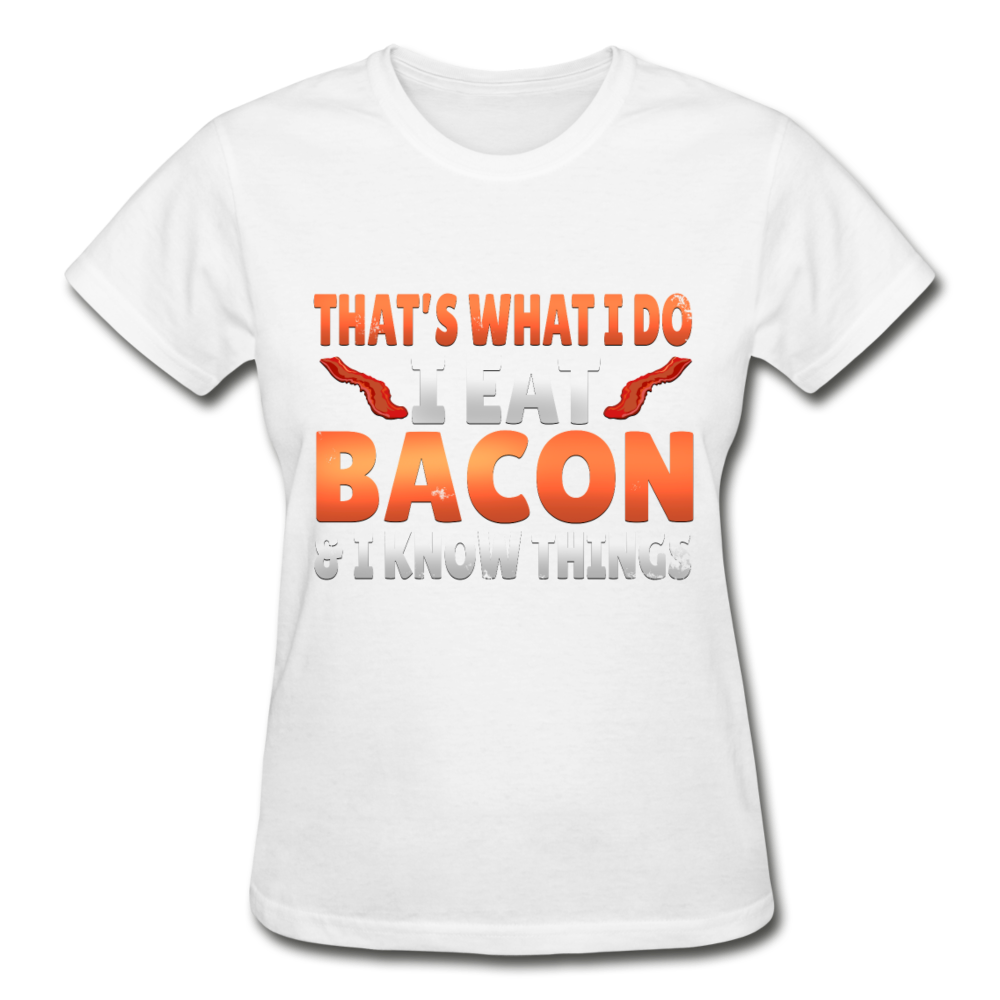Funny I Eat Bacon And Know Things Bacon Lover Gildan Ultra Cotton Ladies T-Shirt