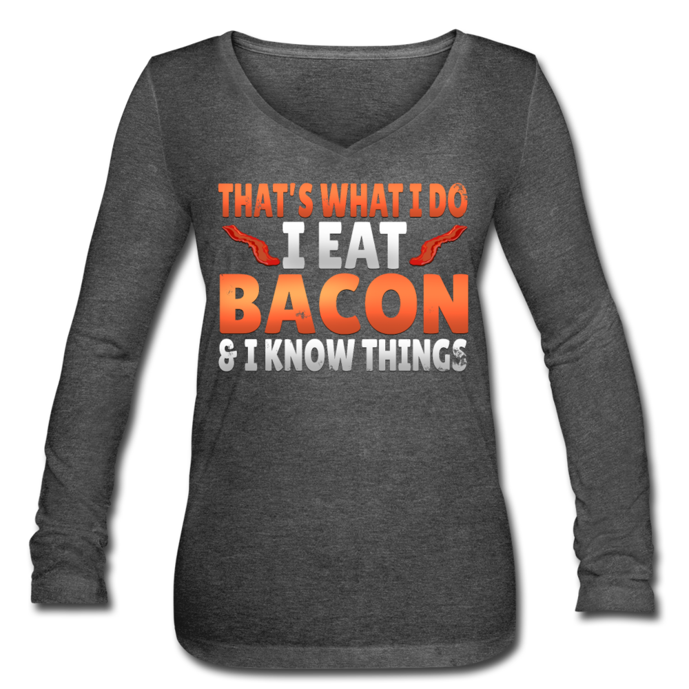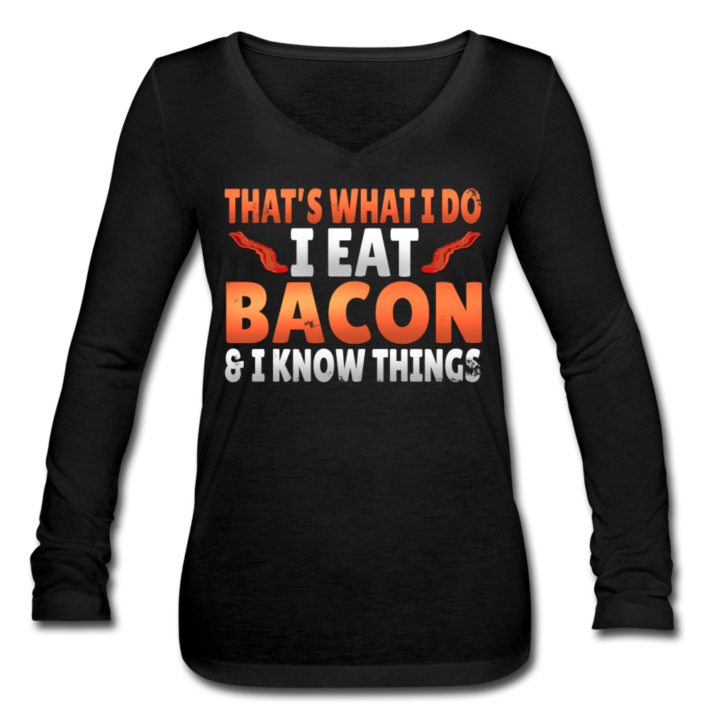 Funny I Eat Bacon And Know Things Bacon Lover Women’s Long Sleeve V-Neck Flowy Tee
