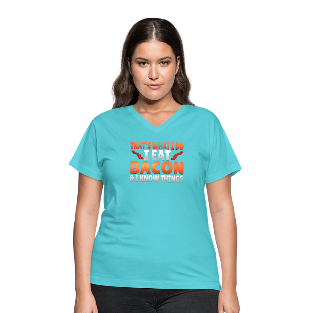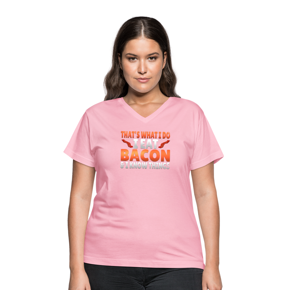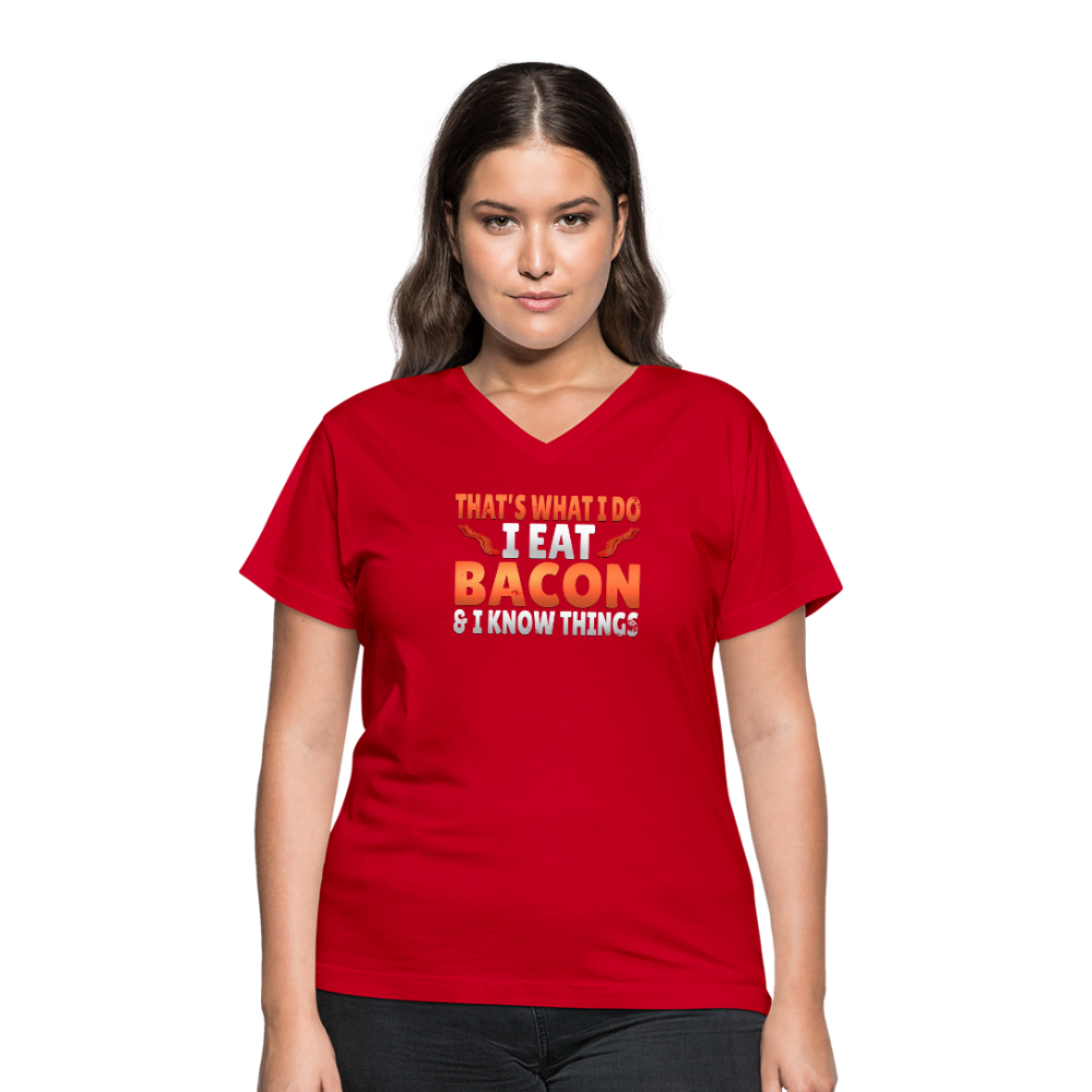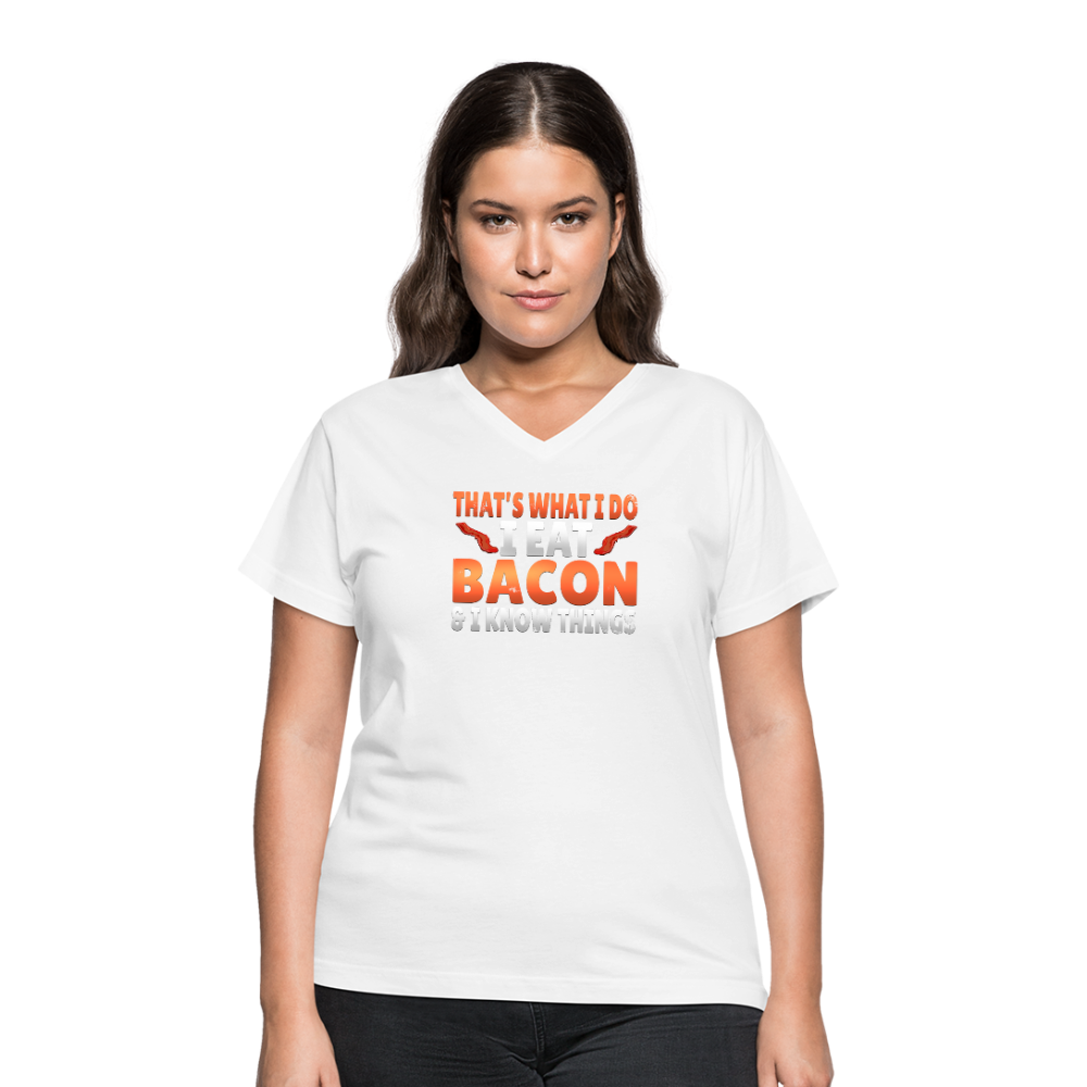 Funny I Eat Bacon And Know Things Bacon Lover Women's V-Neck T-Shirt