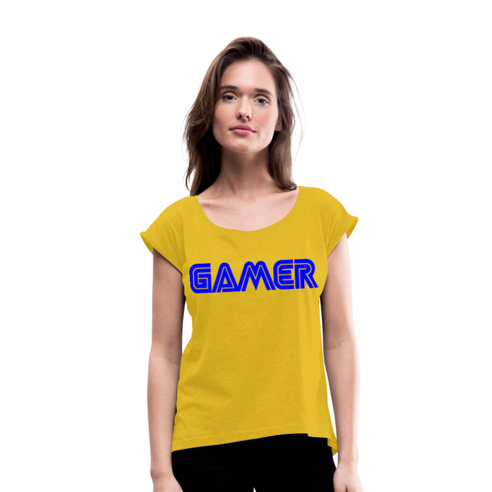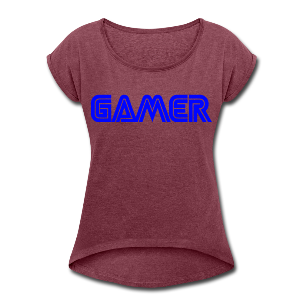 Gamer Word Text Art Women's Roll Cuff T-Shirt