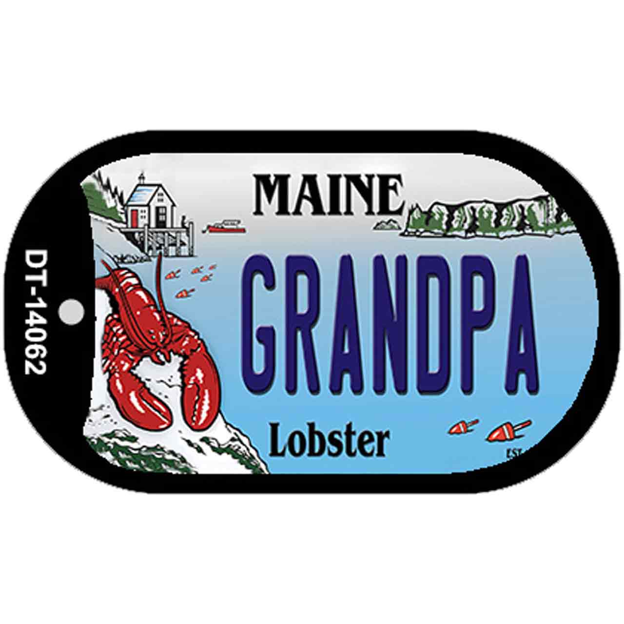 Grandpa Maine Lobster Novelty Metal Dog Tag Necklace. 1" x 2" dog tag kit including 15" silver chain and silencer. Made of the highest quality aluminum for a weather resistant finish. It is lightweight & durable. Proudly made in the USA.