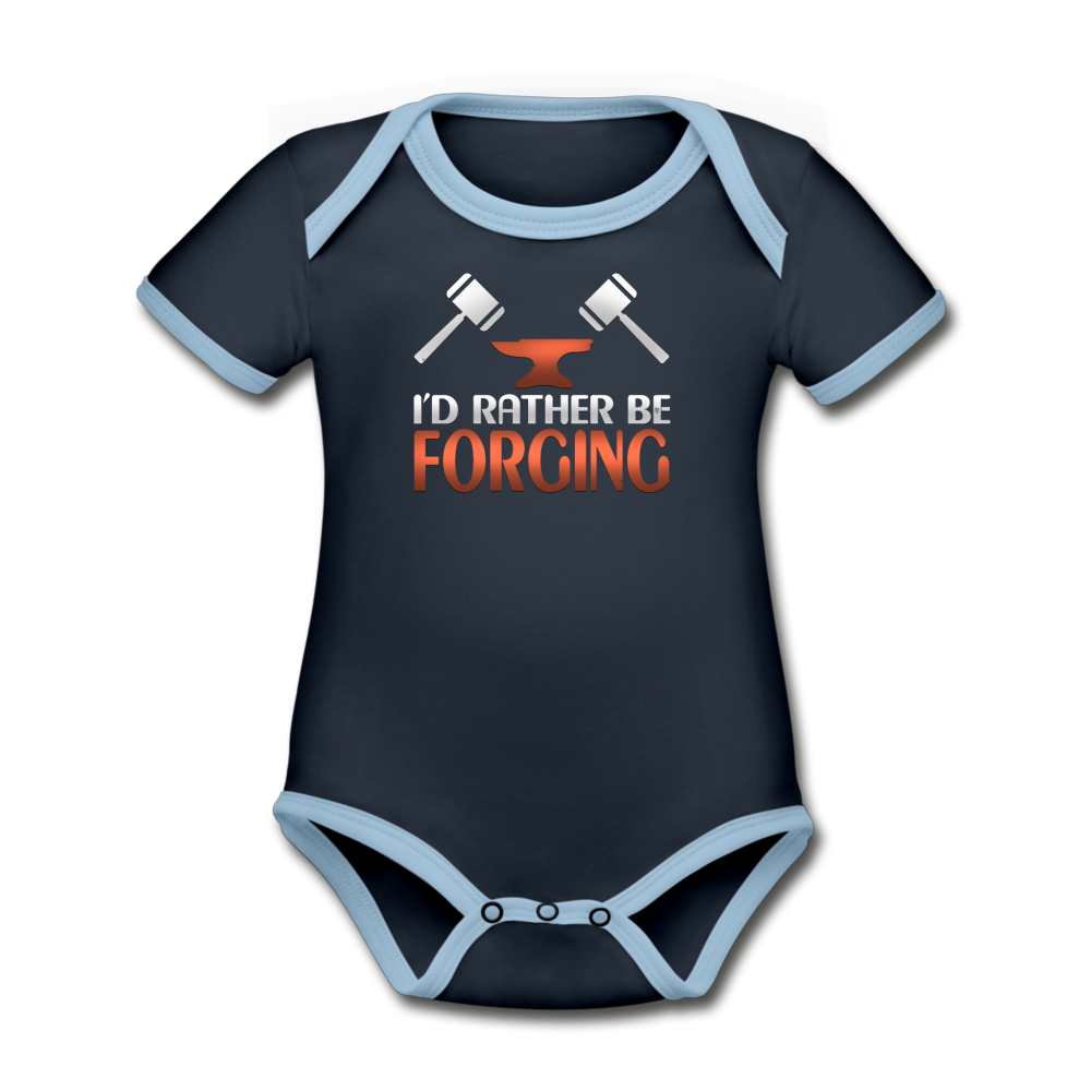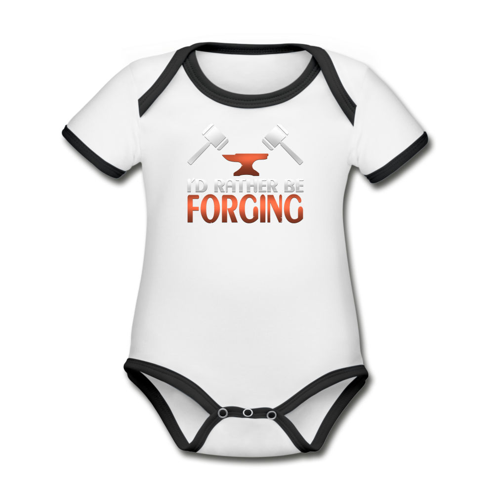 I'd Rather Be Forging Blacksmith Forge Hammer Organic Contrast Short Sleeve Baby Bodysuit