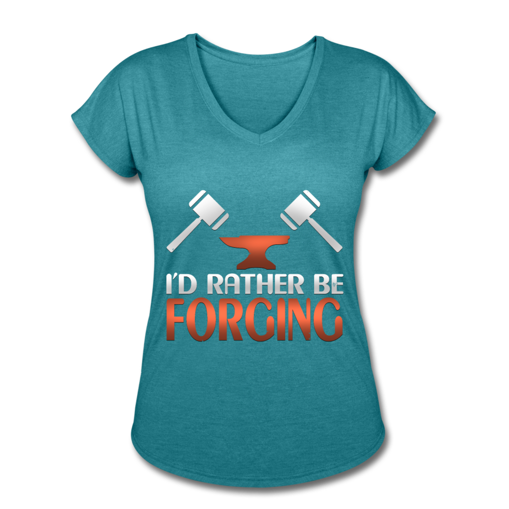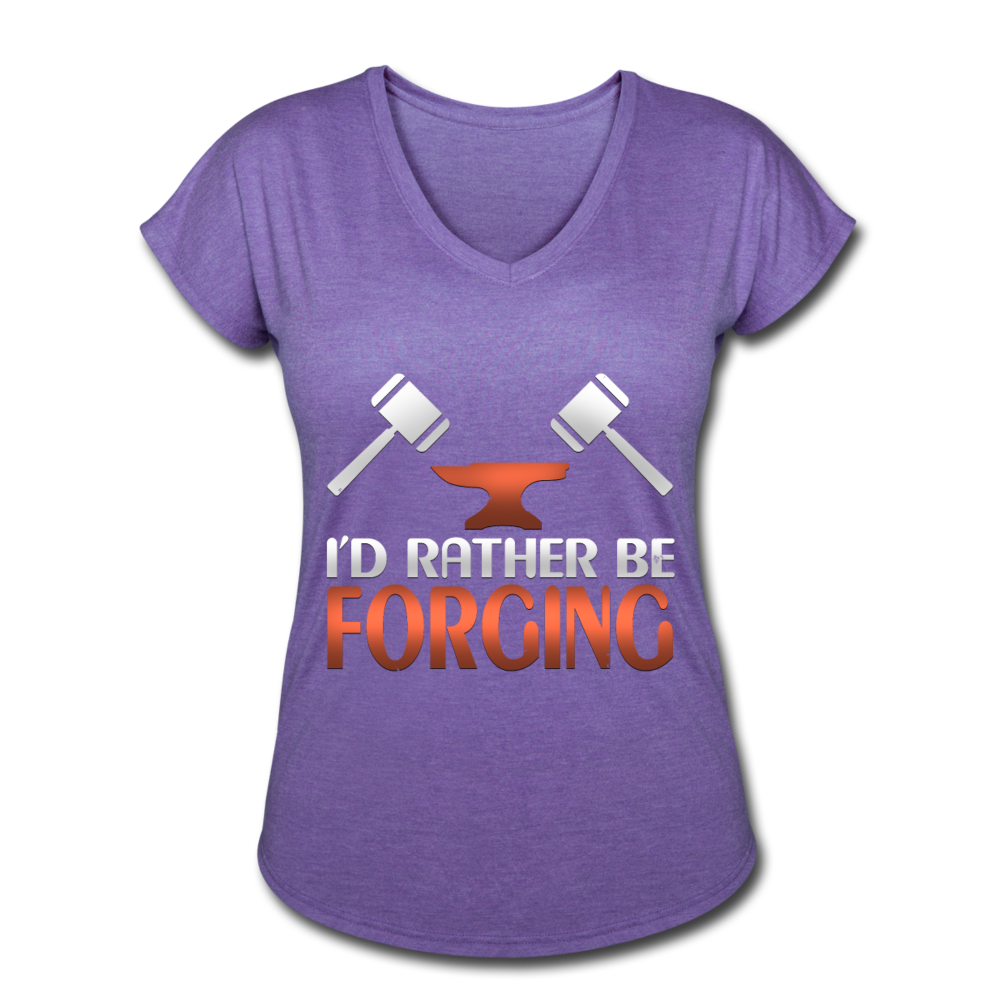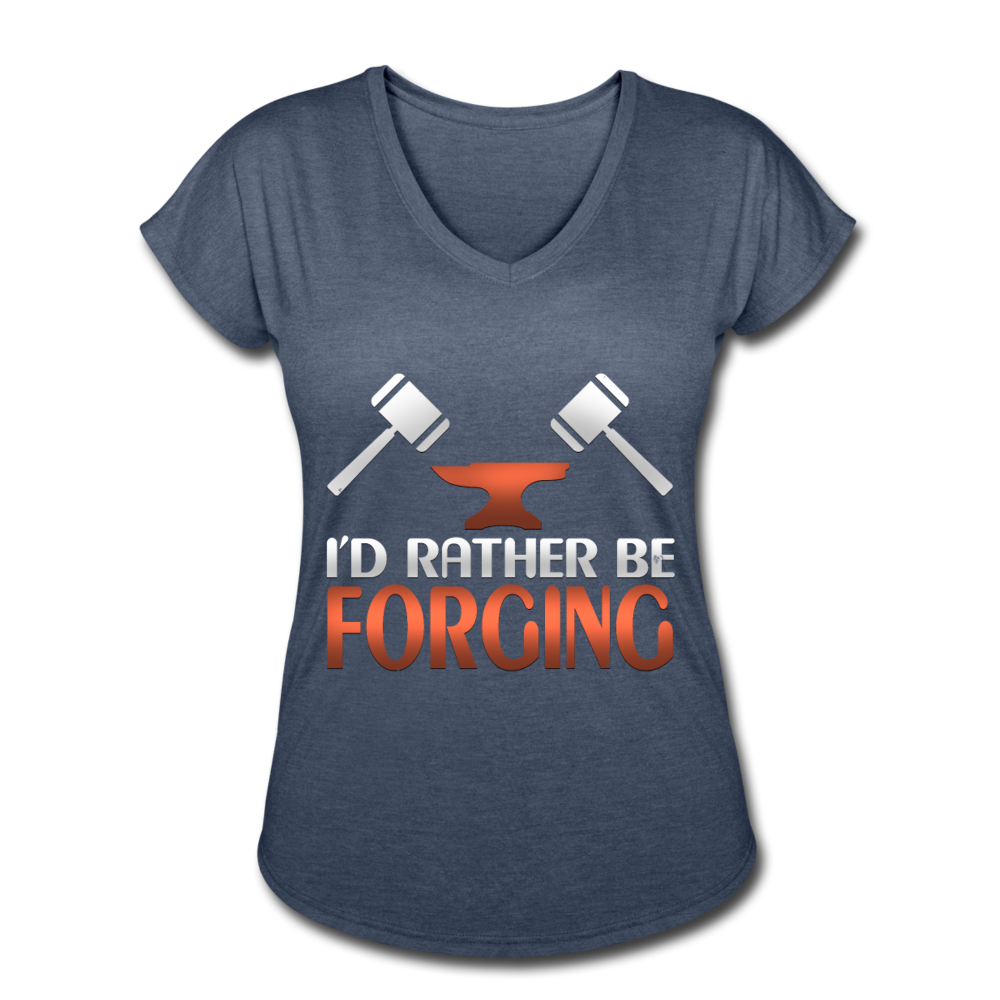 I'd Rather Be Forging Blacksmith Forge Hammer Women's Tri-Blend V-Neck T-Shirt