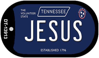 Jesus Tennessee Blue Novelty Metal Dog Tag Necklace. 1" x 2" dog tag kit including 15" silver chain and silencer. Made of the highest quality aluminum for a weather resistant finish. It is lightweight & durable. Proudly made in the USA.