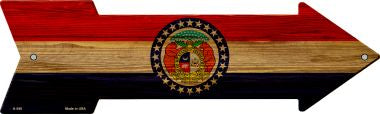 Missouri State Flag Novelty Arrows. 5" X 17" Arrow Sign. Made of the highest quality aluminum for a weather resistant finish. It is lightweight and durable. Pre-drilled holes for quick and easy mounting. Each is proudly made in the USA.
