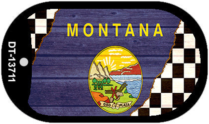Montana Racing Flag Novelty Metal Dog Tag Necklace DT-13711. 1.5" x 2" dog tag kit including 15" silver chain and silencer. Made of the highest quality aluminum for a weather resistant finish. It is lightweight and durable. Individually shrink-wrapped and proudly made in the USA.