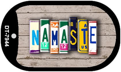 Namaste Plate Art Novelty Metal Dog Tag Necklace DT-7944. 1" x 2" Novelty Metal Dog Tag Necklace including 15" silver chain and silencer. Made of the highest quality aluminum for a weather resistant finish. It is lightweight & durable. Proudly made in the USA.
