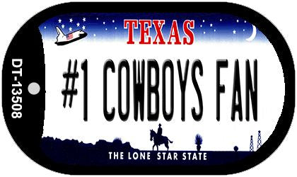 Number 1 Cowboys Fan Novelty Metal Dog Tag Necklace DT-13508. 1.5" x 2" dog tag kit including 15" silver chain and silencer. Made of the highest quality aluminum for a weather resistant finish. It is lightweight & durable. Proudly made in the USA.
