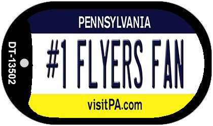 Number 1 Flyers Fan Novelty Metal Dog Tag Necklace DT-13502. 1.5" x 2" dog tag kit including 15" silver chain and silencer. Made of the highest quality aluminum for a weather resistant finish. It is lightweight & durable. Proudly made in the USA.
