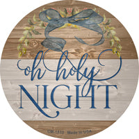 Oh Holy Night Bow Wreath Novelty Circle Coaster Set of 4. 3.5" Circle Coaster Set of 4. Each coaster has cork adhered to the back to provide surface protection for use on desks, tables, and shelves. Made of the highest quality aluminum with a weather resistant finish. Proudly made in the USA.