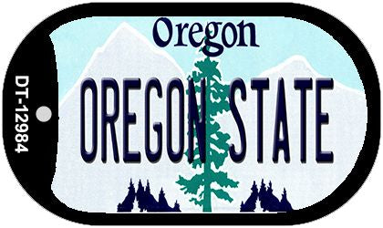 Oregon State Novelty Metal Dog Tag Necklace DT-12984. 1.5" x 2" dog tag kit including 15" silver chain and silencer. Made of the highest quality aluminum for a weather resistant finish. It is lightweight & durable. Proudly made in the USA.