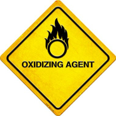 Oxidizing Agent Novelty Metal Crossing Sign CX-536. 16.5"X16.5" metal crossing sign, 12"x12' square size. Made of the highest quality aluminum for a weather resistant finish. It is lightweight and durable and has pre-drilled holes for quick and easy mounting. Personalize with ribbon, wire or string. Individually shrink-wrapped and proudly made in the USA. Individually shrink wrapped w/ drilled holes for quick and easy reseller display as well as for customer mounting.
