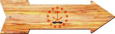 Rhode Island State Flag Novelty Arrows A-560. 5" X 17" Arrow Sign. Made of the highest quality aluminum for a weather resistant finish. It is lightweight and durable. Pre-drilled holes for quick and easy mounting. Each is proudly made in the USA.