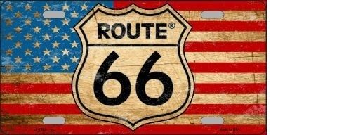 ROUTE 66 AMERICAN FLAG METAL NOVELTY LICENSE PLATE