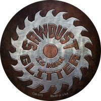 Sawdust Is Man Glitter Novelty Circle Coaster Set of 4. 3.5" Circle Coaster Set of 4. Each coaster has cork adhered to the back to provide surface protection for use on desks, tables, and shelves. Made of the highest quality aluminum with a weather resistant finish. Proudly made in the USA.