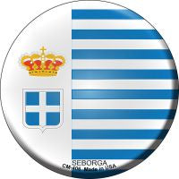 Seborga Country Novelty Circle Coaster Set of 4. 3.5" Circle Coaster Set of 4. Each coaster has cork adhered to the back to provide surface protection for use on desks, tables, and shelves. Made of the highest quality aluminum with a weather resistant finish. Proudly made in the USA.